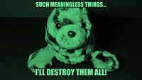 | “ | Such meaningless things... I'll destroy them all! | ” | |